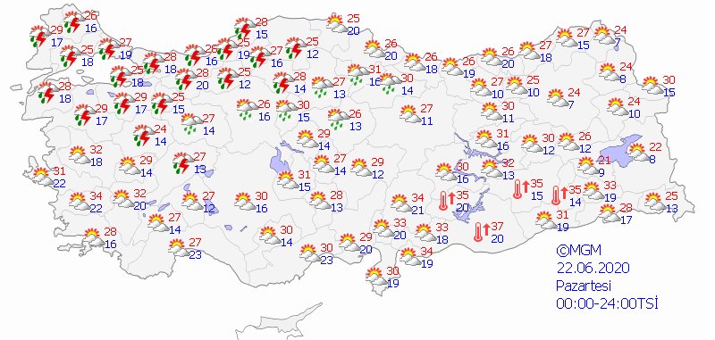 21 Haziran Pazartesi günü hava tahmini ise şöyle: