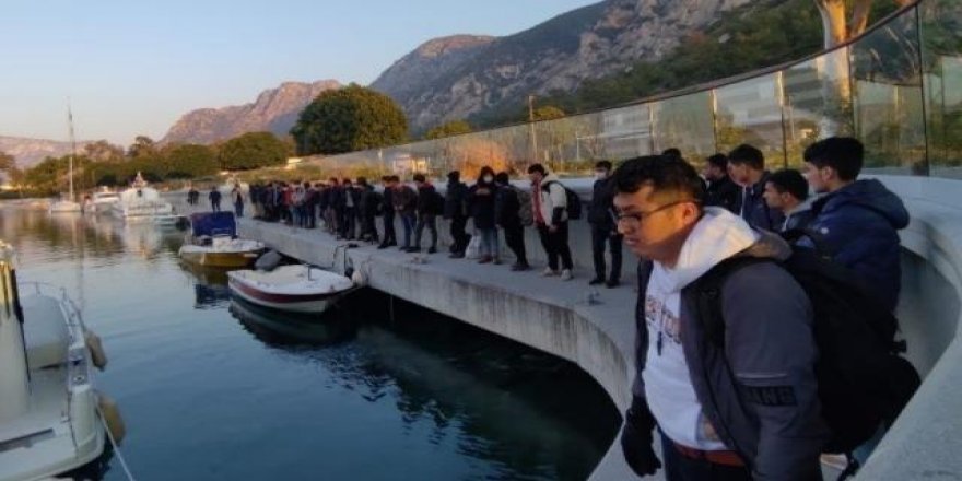 Muğla'nın Milas ilçesi açıklarında yelkenli teknede yakalanan 111 düzensiz göçmen karaya çıkarıldı.