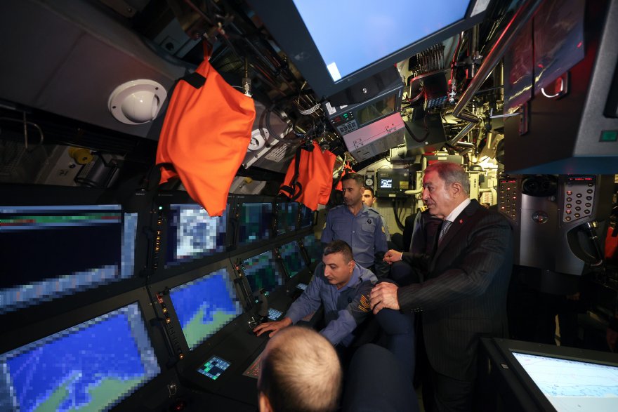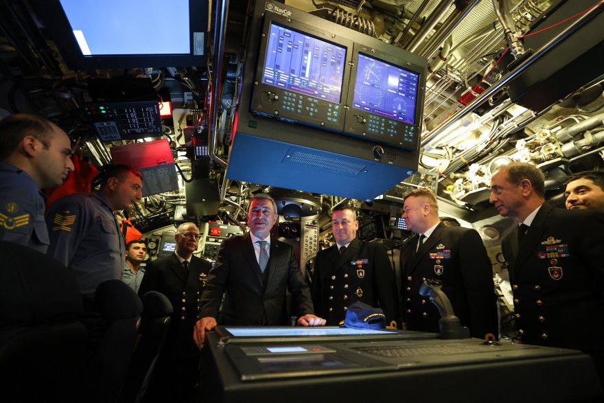 İnceleme ve denetlemeleri sırasında "sessiz ve derinden" parolasıyla görev yapan Denizaltı Filosu Komutanlığı'na da giden Akar, Yeni Tip Denizaltı Projesi kapsamında yapımı devam eden "Reis" sınıfı denizaltılardan Piri Reis'te incelemelerde bulundu.