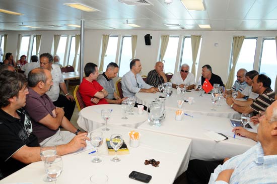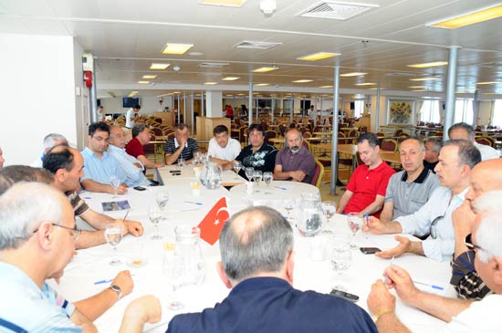 Denizcilik Müsteşarlığı ile yapılan toplantılardan birini de gemide gerçekleştiren DTO Yönetimi, deniz ticareti ile ilgili sorunlarını dile getirdi, bürokratlarla fikir alışverişinde bulundu.