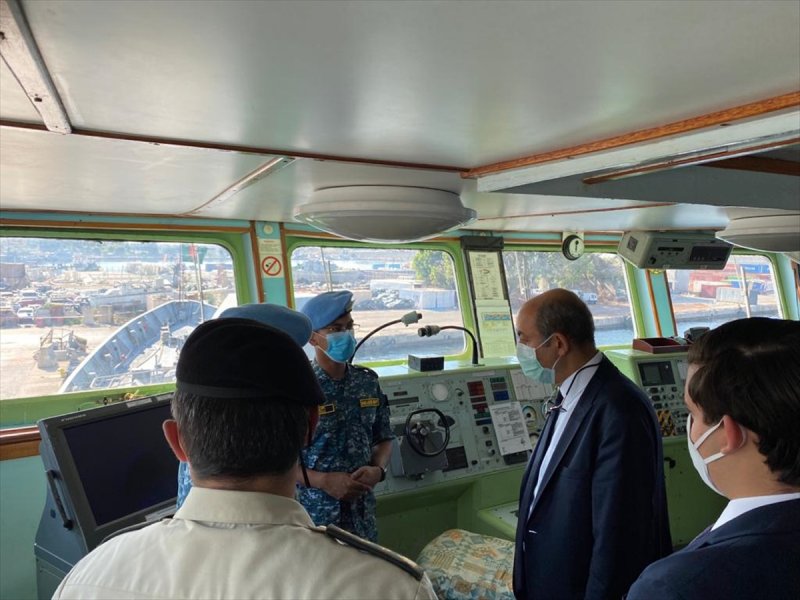 Türkiye'nin Beyrut Büyükelçisi Hakan Çakıl ve Türkiye’nin Beyrut Askeri Ateşesi Albay Bayram Büyan, 4 Ağustos'ta Beyrut Limanı'nda 2 bin 750 ton amonyum nitratın infilak etmesiyle meydana gelen şiddetli patlamada hasar gören Bangladeş'e ait askeri gemiyi ziyaret etti.