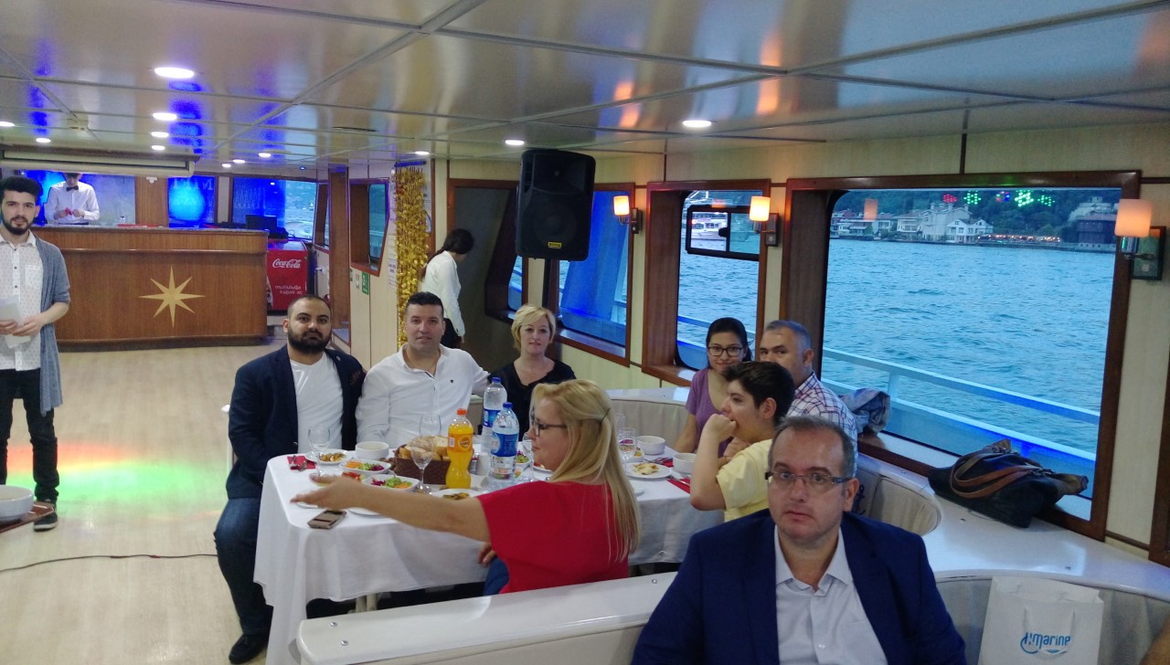 İstanbul Boğazı’nda seyir halinde ki bir teknede düzenlenen iftar yemeğinde katılımcılar keyifli anlar geçirdiler. Yemek sonrası katılımcılar bu tür organizasyonların gelenekselleşmesi temennisiyle ayrıldılar.