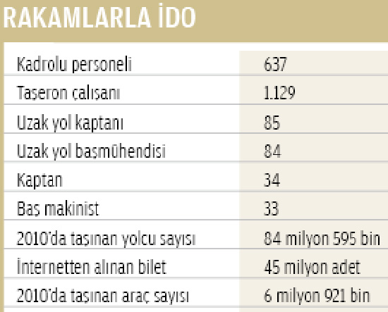 İDO'nun şartname ve bilgi odası şifresi satışından İstanbul Büyükşehir Belediyesi (İBB), 550 bin dolar para kazandı. Belediyenin sadece şartname satışından yarım milyon dolar parayı kasasına koyması yatırımcıların özelleştirmeye verdiği önemi ortaya koyarken, yatırımcıların da kim olduğu iyice netleşiyor. Koç Holding, ihaleye İsveçli Stena Lines ile konsorsiyum kurarak girecek. İhale aşamasında en güçlü oyuncu olarak gösterilen konsorsiyumun İsveçli ortağı Stena Lines, 2010'da 15 milyar dolar yatırım yapmış, 7 milyar dolar da ciro elde etmişti. 35 feribotu, 65 tankeri ve 9 Ro-Ro gemisi bulunan şirketin, Baltık Denizi ve İskandinav bölgesinde faaliyet gösteren 16 hattı bulunuyor. İMKB'de işlem gören 360 milyon kayıtlı sermayesi bulunan Rhea Girişim de Yunanistanlı Nel Lines ile ihale için konsorsiyum oluşturdu. Sabancı Holding, Akfen, Zorlu, Demirören Şirketler Grubu, Ulusoy Holding, Brightwell, uluslararası yatırım fonu Kohlberg Kravis&Roberts'ın (KKR) satın aldığı UN Ro-Ro, Tahran Havayolları-Suudi yatırım fonu ortaklığı, Global Yatırım da satışla ilgilenen diğer firmalar. Bu arada şartname satın alanlardan Boydak Holding yöneticilerinin "Şartnameyi inceledik, bizi aşar." dediği öğrenilirken, Hüsnü Özyeğin'in sahibi olduğu Fiba Holding'den de şartname alındıktan sonra ciddi bir geri dönüş olmadığı öğrenildi. Bu arada İBB Başkanı Kadir Topbaş'ın özelleştirmeden 3 milyar dolar gelir beklediği öğrenildi.