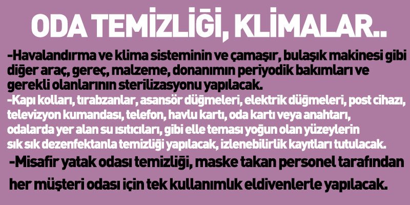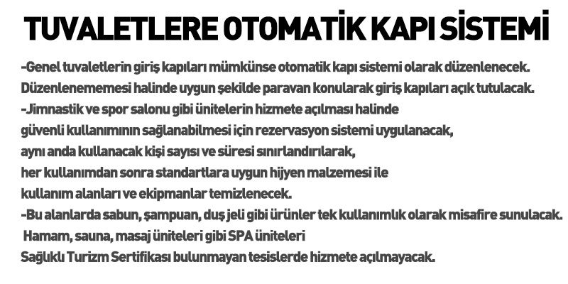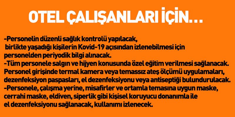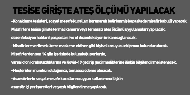 Koronavirüs sürecinde Kültür ve Turizm Bakanlığı konaklama tesislerinde alınacak önlemlere ilişkin bir genelge yayımladı.