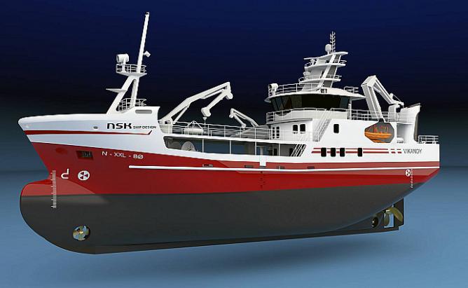 44,2 metre boyunda ve 11,5 metre genişliğindeki Vikanoy isimli balıkçı gemisi, NSK Ship Design firması tarafından tasarlandı.