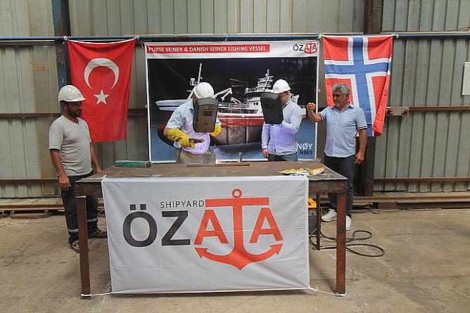 Özata Tersanesi, Norveçli Bo Havfiske firması için inşa edilecek derin su balıkçı gemisinin sac kesim törenini gerçekleştirdi.