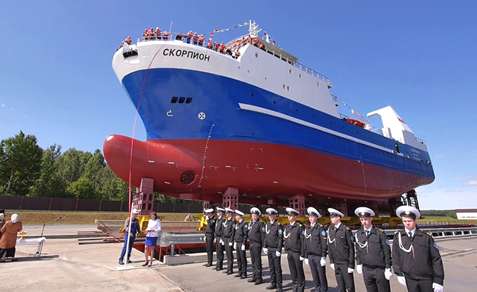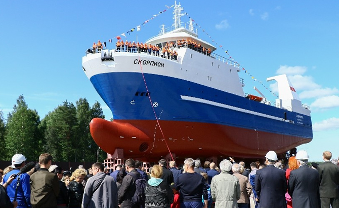 Görüşme sonrasında her iki bakan, Orta Kafa Balık Tutma Buz Trolü "Skorpion"un suya indirilmesi törenine katıldı.