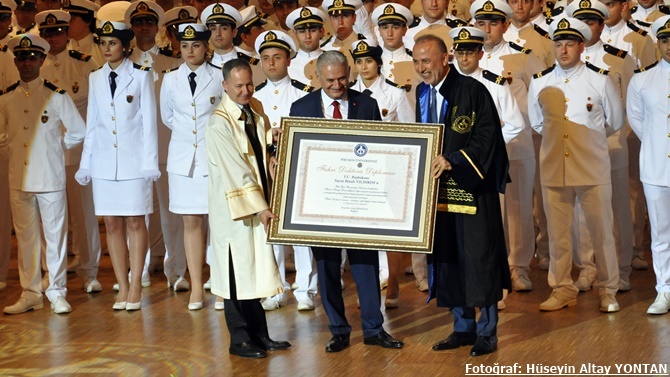 Bakan Yılmaz’ın konuşmasının ardından Piri Reis Üniversitesi tarafından alınan senato kararıyla Türkiye Cumhuriyeti Başbakanı Binali Yıldırım’a “Fahri Doktora” unvanı takdim edildi. Yıldırım’a “Fahri Doktora Diploması”, Piri Reis Üniversitesi Rektörü Prof. Dr. Oral Erdoğan ve Mütevelli Heyeti Başkanı Metin Kalkavan tarafından verildi.