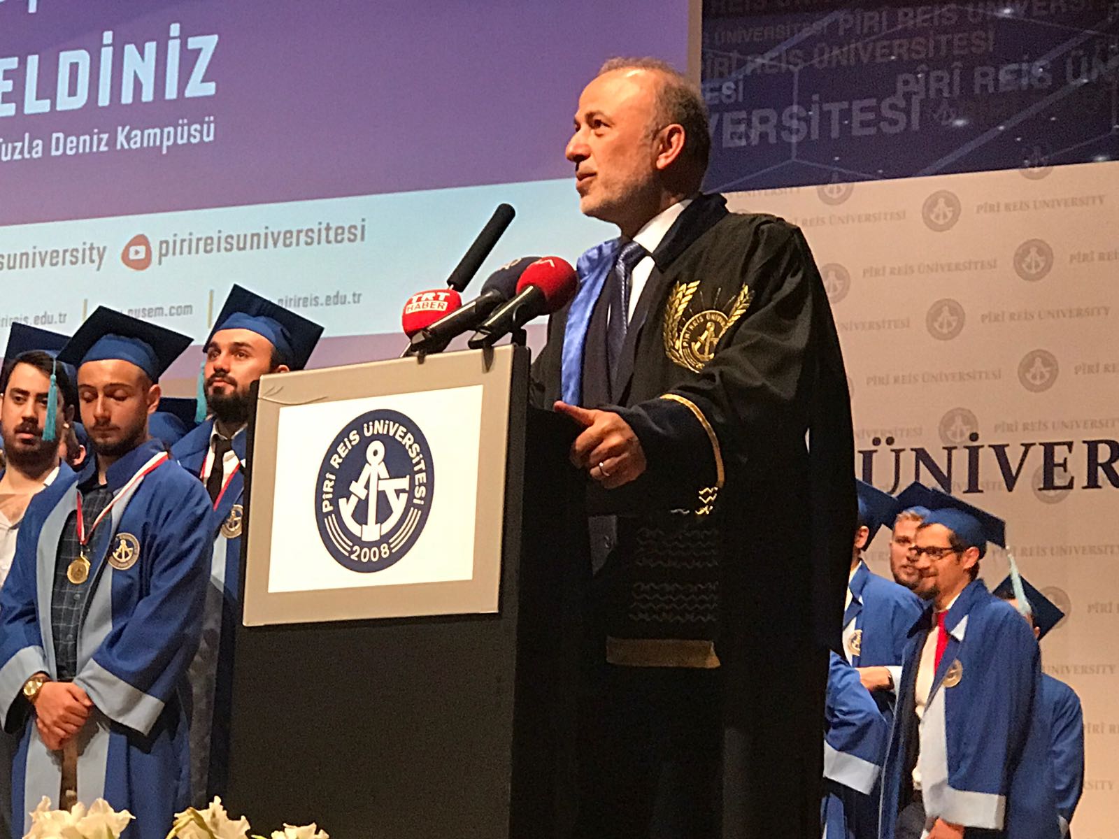 Tören Pîrî Reis Üniversitesi Rektörü Profesör Oral Erdoğan'ın konuşmasıyla başladı. Erdoğan denizcilik sektörünün birer neferi oalack öğrencilerle gurur duyduğunu söyledi ve hepsine teşekkür etti.