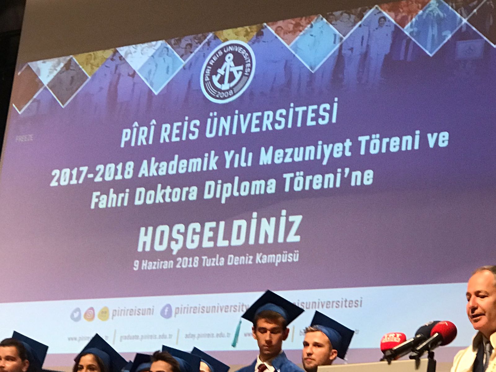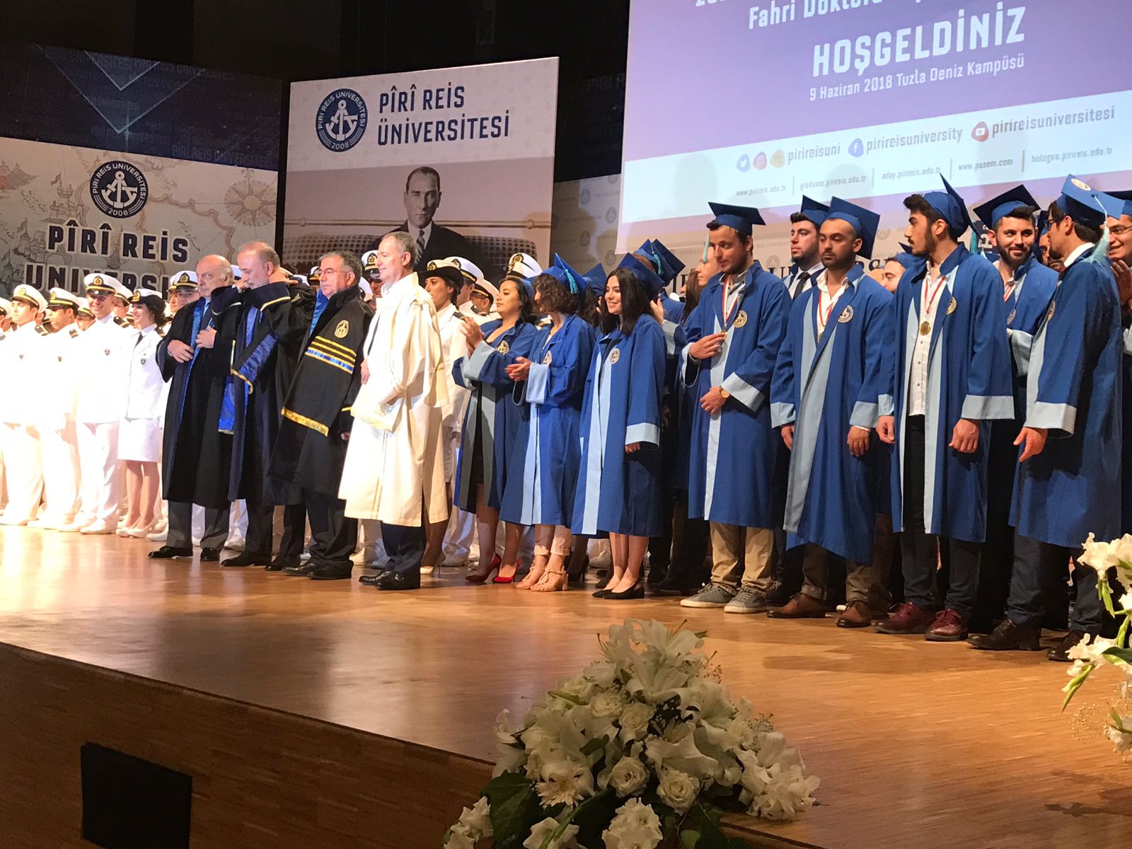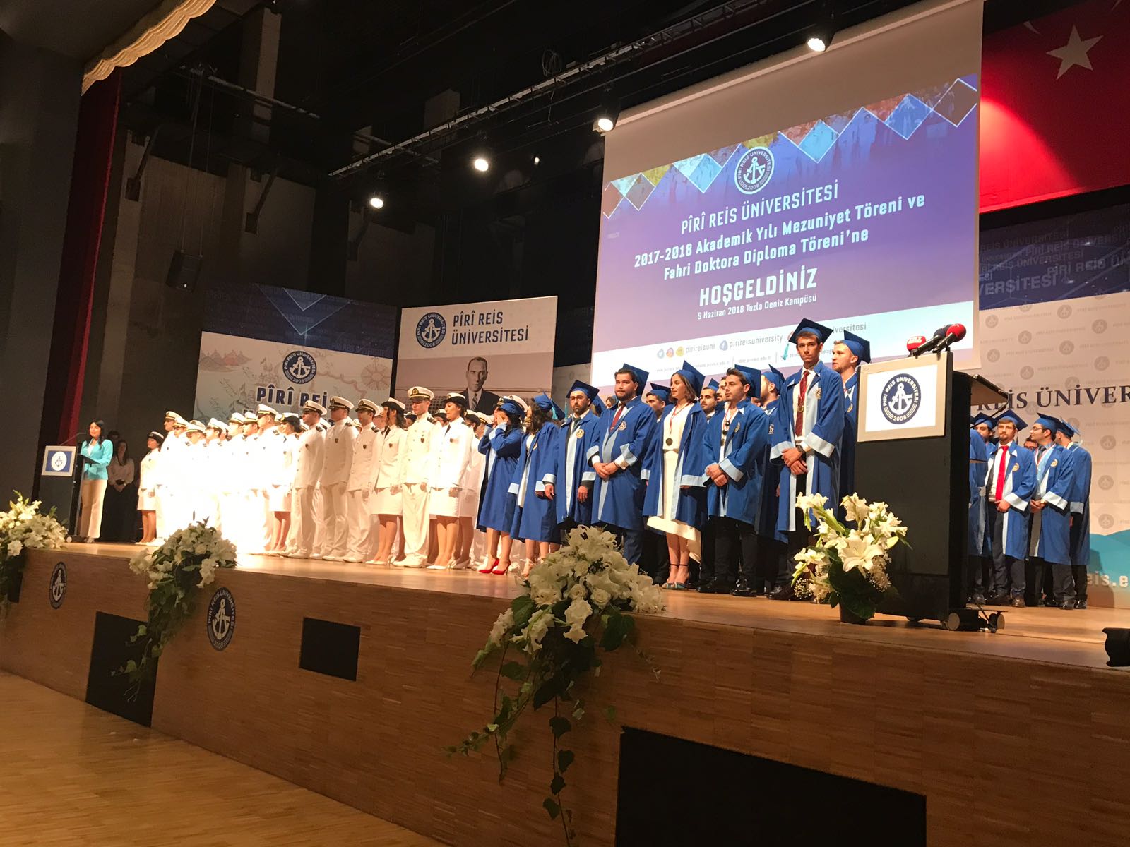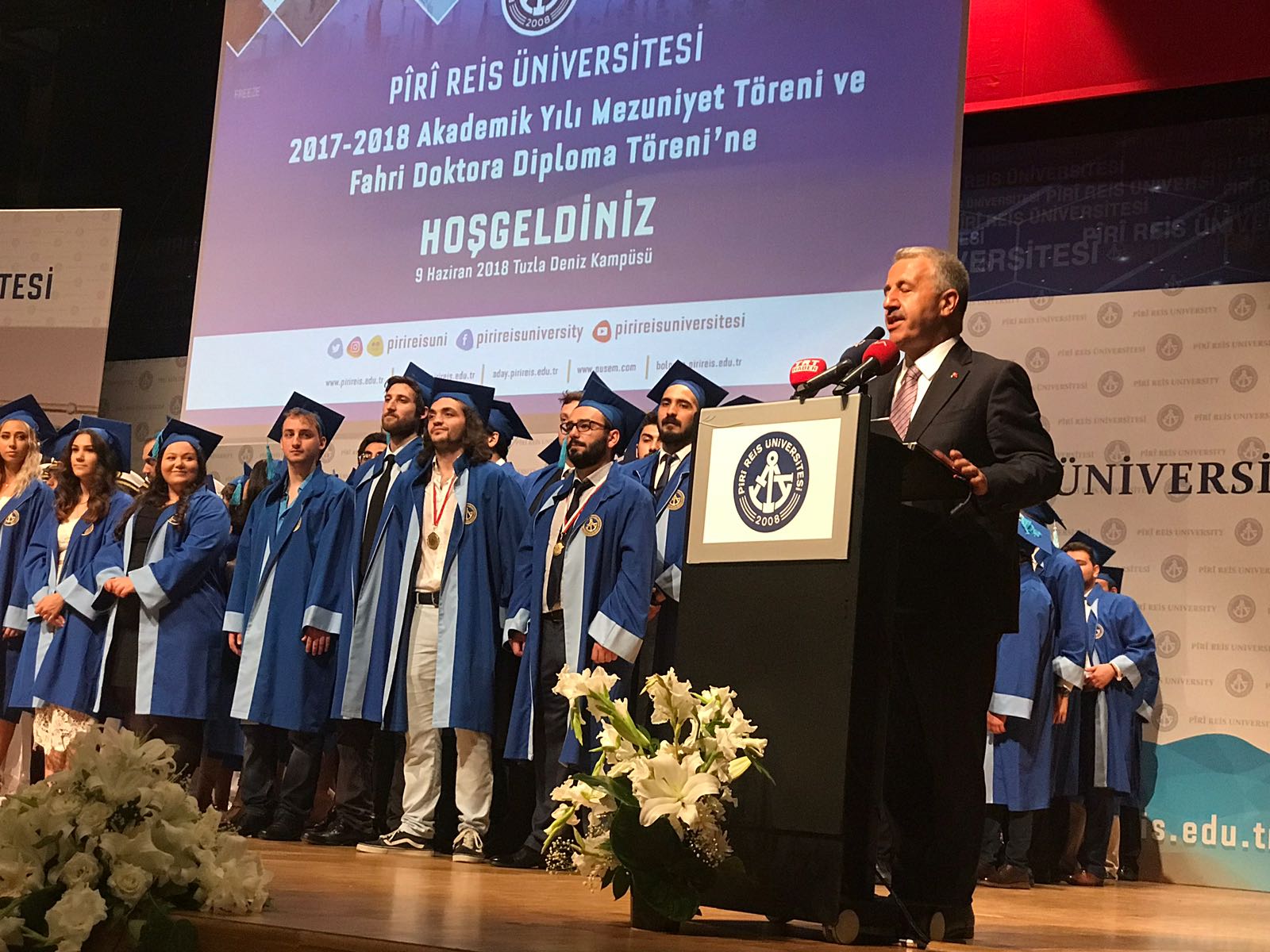 Pîrî Reis Üniversitesi'nin 2017-2018 Akademik Yılı Mezuniyet Töreni ve Milli Eğitim Bakanı İsmet Yılmaz'a Fahri Doktora verme töreni Tuzla Deniz Kampüsü Konferans Salonu'nda yapıldı.