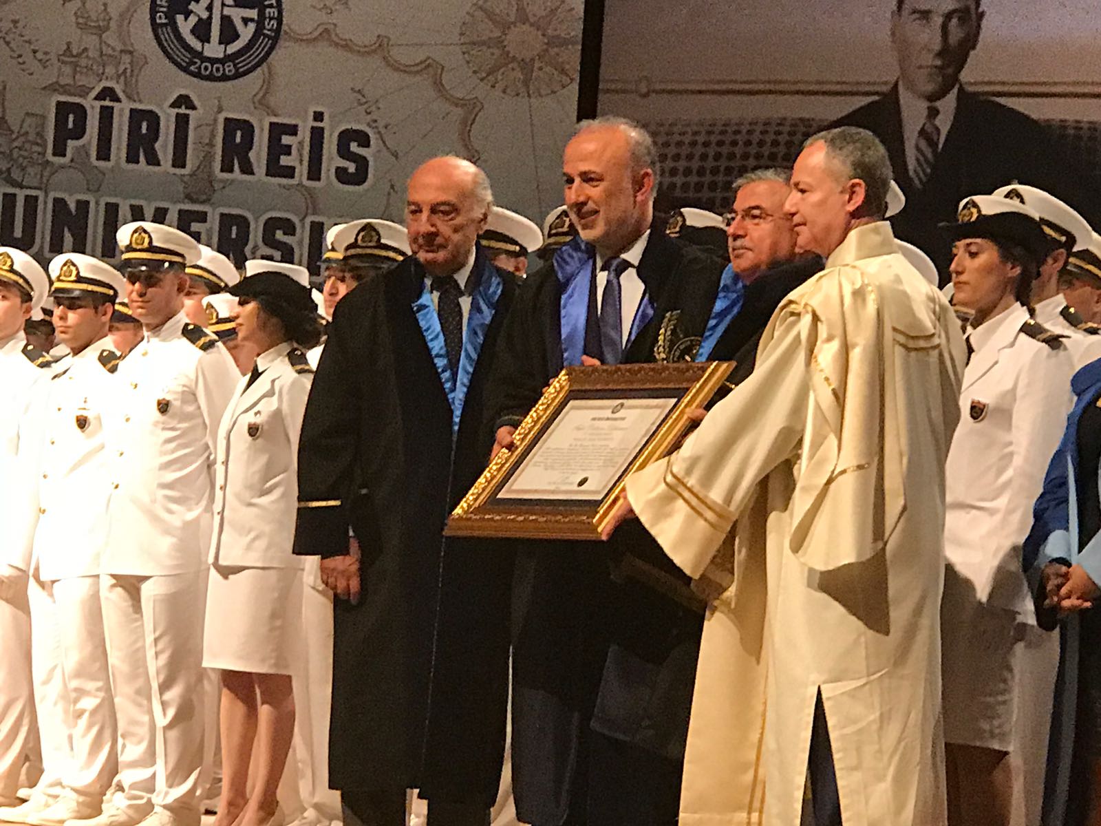 Öte yandan Piri Reis Üniversitesi Senatosu tarafından; denizcilikle ilgili hedef ve politikaları kapsamında uluslararası rekabet gücünü arttıracak düzenlemelerin sağlanması, savunma sanayi araçlarının milli imkanlarla elde edilmesi hedefi ile dışa bağımlılığı en aza indirecek strateji ve uygulamaların geliştirilmesi, milli eğitimin uluslararası standartlara ulaştırılmasının amaçlanarak çalışılması konuları başta olmak üzere Türk Denizciliği, Savunma Teknolojileri ve Milli Eğitime olan değerli hizmet ve katkılarından dolayı, “Fahri Doktora” unvanı veriliyor.