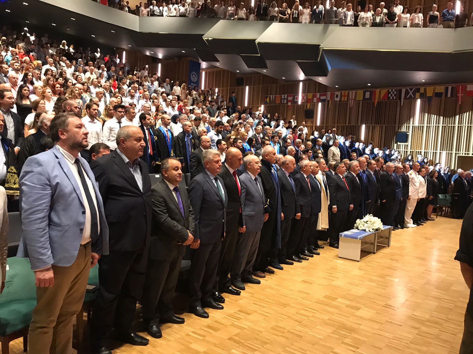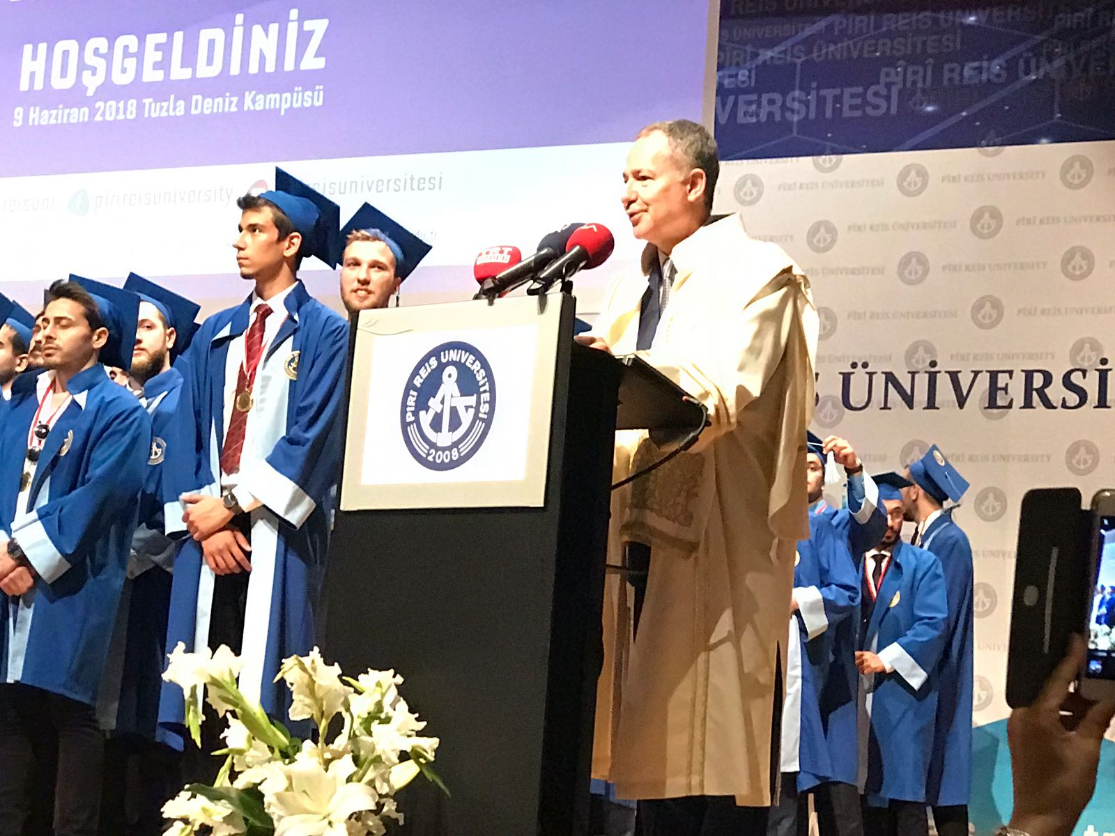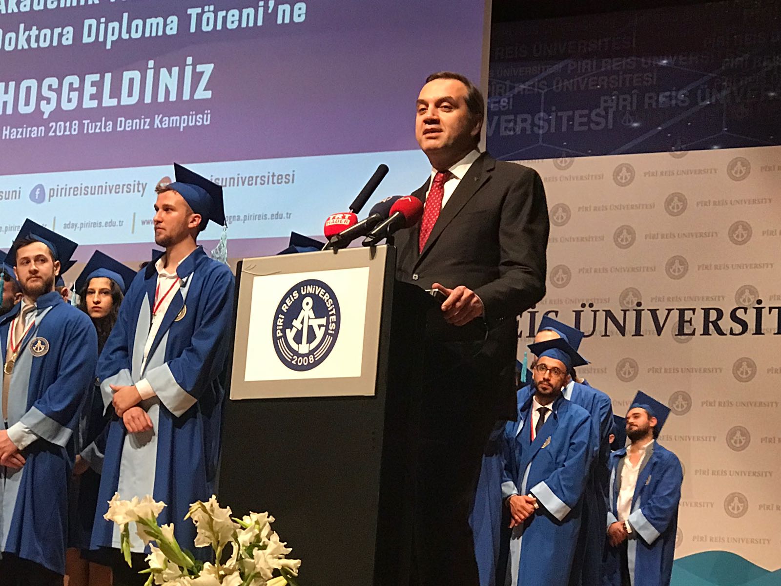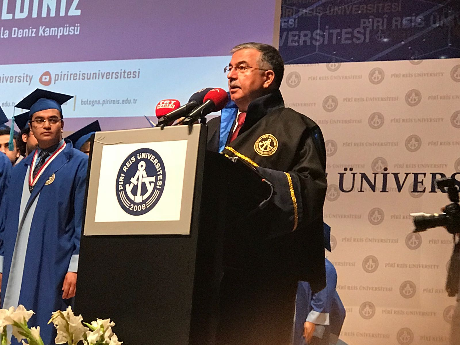 Törene Ulaştırma Denizcilik ve Haberleşme Bakanı Ahmet Arslan, Milli Eğitim Bakanı İsmet Yılmaz, Ulaştırma Denizcilik ve Haberleşme Bakanlığı Müsteşarı Suat Hayri Aka, Ulaştırma, Denizcilik ve Haberleşme Bakanlığı Deniz Ticareti Genel Müdürü Cemalletin Şevli, Kıyı Emniyeti Genel Müdürü Hızırreis Deniz, Piri Reis Üniversitesi Mütevelli Heyet Başkanı Metin Kalkava, İMEAK Deniz Ticaret Odası Yönetim Kurulu Başkanı Tamer Kıran, Denizcilik esi müsteşarı Hasan Naiboğlu, Piri Reis Üniversitesi Rektörü Profesör Oral Erdoğan, Piri Reis Üniversitesi kurucu Rektörü Kamil Sağ, Profesör Dr. Tamer Berksoy, akademisyenler, denizcilik sektörü temsilcileri ve veliler katıldı.