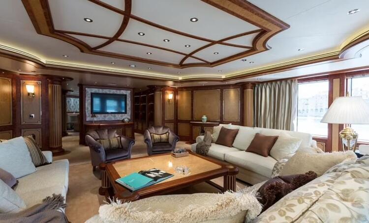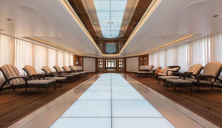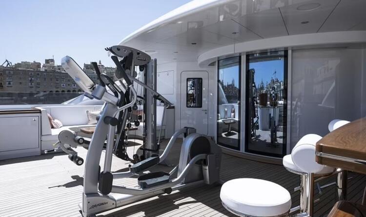 Ayrıca salon tarzı oturma ve bar tabureleri ile kaplı güvertede egzersiz ekipmanları da görülüyor. Alman Bild gazetesinin haberlerine göre, süperyatın aylardır devam eden onarımları tamamlanamadan kaçtığı öne sürüldü.