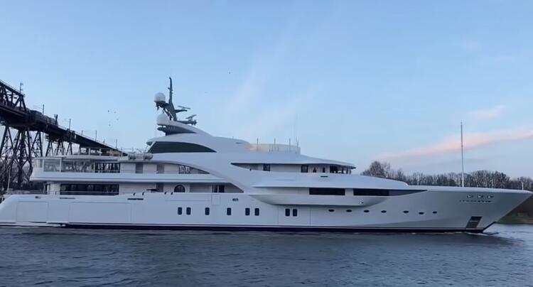 Helikopter pisti ve dans pistine dönüşen bir yüzme havuzu olan 82 metrelik devasa gemi, Rusya'nın Ukrayna'yı işgal etmesi durumunda olası yaptırımlar öncesinde Alman tersanesinden denize açıldı.