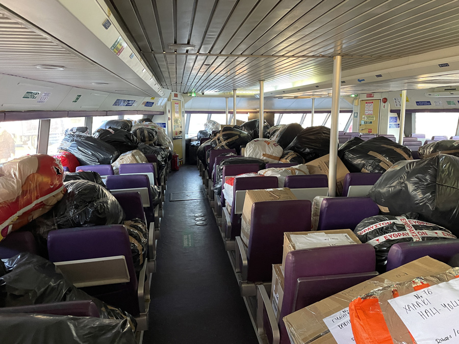 Toplanan yardımlar, Bodrum - İstanköy arasında seferler düzenleyen Asım Kaptan gemisine yüklenerek Bodrum’a getirildi. Malzemeler, feribottan vinçle alınarak kamyona yüklendi.