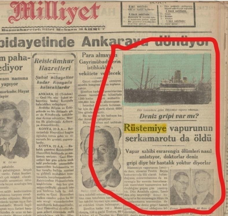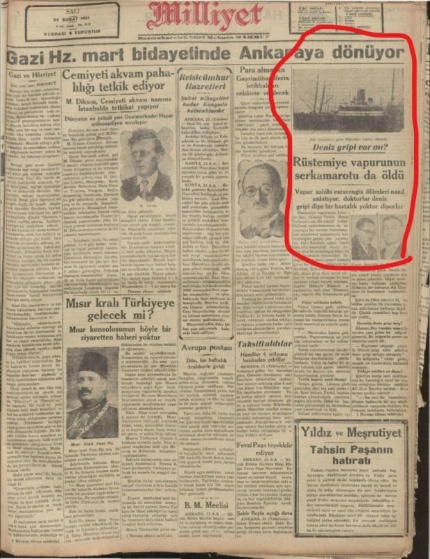 Rüstem Bey kendisine gelen bir telgrafı gösterdi.Bu telgrafta aynen şu cümleler yazılı idi; “Kaptanın yapılan otopsisinde gripten öldüğü anlaşılmıştır.Bu telgrafta “Deniz gribi” diye bir hastalığın bulunduğundan bahsedilmektedir.