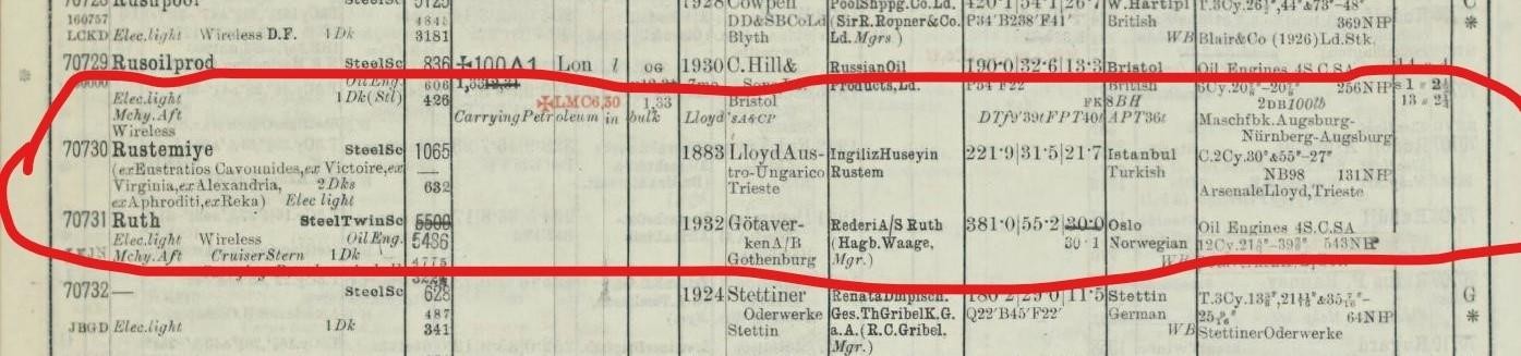 Lloyd’s Register of Shipping 1932-1933 yıllığında Rüstemiye hakkındaki bölüm.