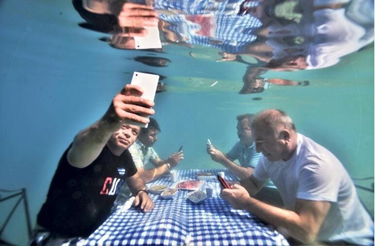 Toplumsal sorunlara dikkat çekmek için suyun altında canlandırdığı sahneleri fotoğraflayan Nejdet Demirtaş, bu kez dünyanın büyük sorunu haline gelen teknoloji ve sosyal medya bağımlılığını konu edindi.