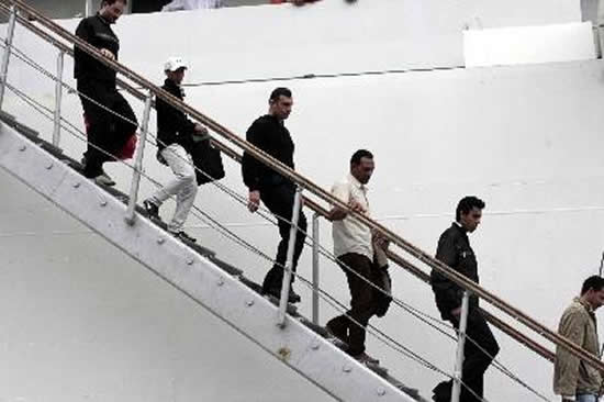 İskenderiye'de gemiyi karşılayan Mısır vatandaşları, Türkiye lehine tezahüratta bulundu.