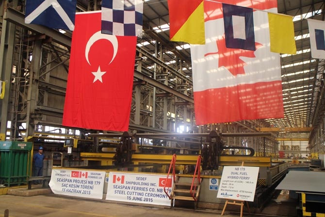 Sedef Tersanesi’nin Kanada merkezli Seaspan Ferries Corporation (SFC) için üreteceği iki adet yeni çift yakıtlı (Hibrid-LNG) feribotların ilk sac kesimi 15 Haziran Pazartesi günü gerçekleşti.