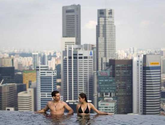 Güney Asya ülkesi Singapur'da dünyanın en lüks otellerinden biri açıldı. Otelin asıl özelliği ise 150 metre boyunda dev bir havuzu terasında bulundurması. Ancak otelde bir gecelik konaklama 400 dolara mal oluyor.