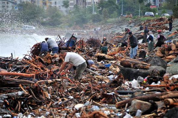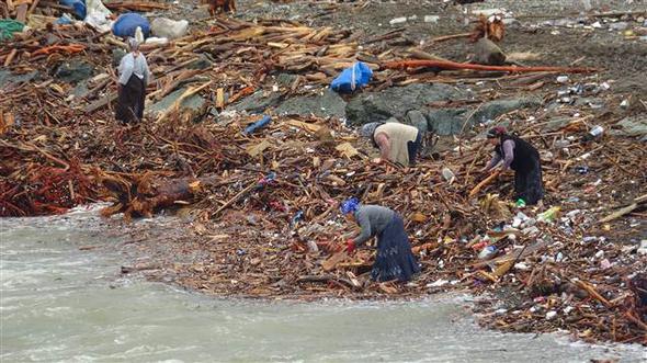 RİZE’de can alan şiddetli yağmurun etkisiyle taşan dereler,devirdiği ağaçlarla birlikte önüne kattığı her şeyi denize sürükledi. Çayeli İlçesi’nde deniz kıyısında biriken odunlar, kışlık yakacak ihtiyaçlarını gidermek için aileler tarafından toplandı.