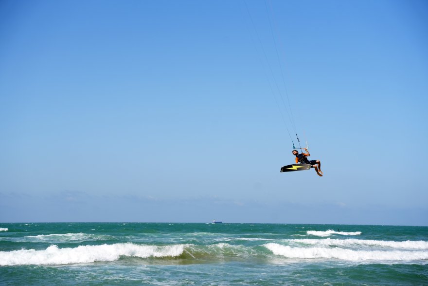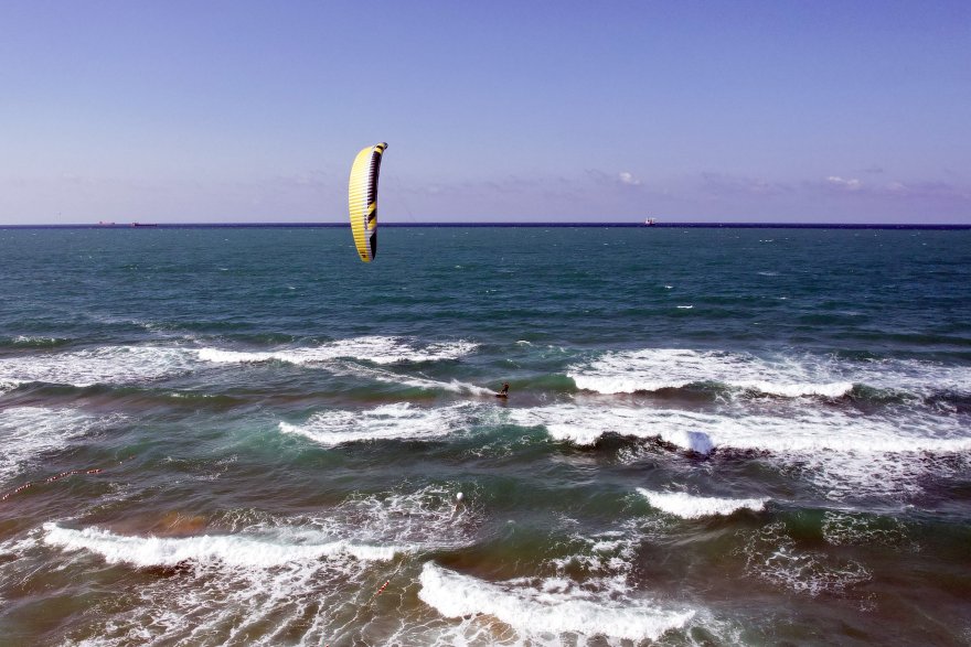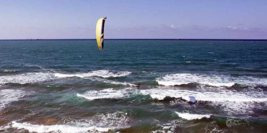 ‘Kitesurf' olarak bilinen uçurtma sörfü yapan sporculardan Uğur İyigün, “Yaz rüzgarları başladı. Öğleden sonra poyraz esiyor. Mümkün olduğunca tadını çıkarmaya çalışıyoruz. Rüzgar olduğu sürece haftanın 3-4 günü buraya geliyoruz” dedi.