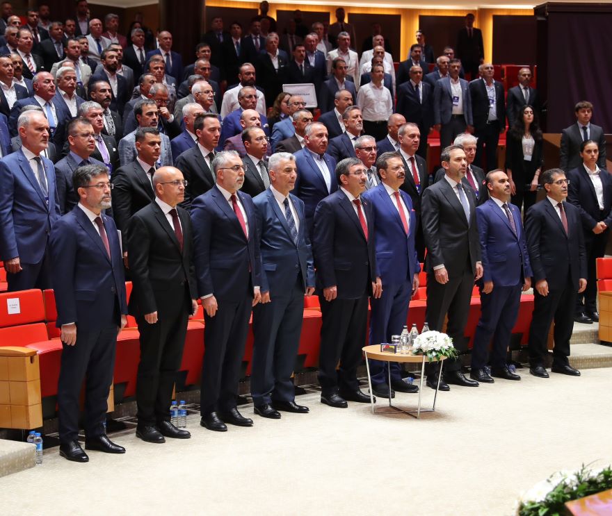 TOBB İkiz Kuleler'de gerçekleştirilen toplantıya, Cumhurbaşkanı Yardımcısı Cevdet Yılmaz, Hazine ve Maliye Bakanı Mehmet Şimşek, Ticaret Bakanı Ömer Bolat, Çalışma ve Sosyal Güvenlik Bakanı Vedat Işıkhan, Tarım ve Orman Bakanı İbrahim Yumaklı, Sanayi ve Teknoloji Bakanı Mehmet Fatih Kacır, Enerji ve Tabii Kaynaklar Bakanı Alparslan Bayraktar ile Cumhurbaşkanlığı Strateji ve Bütçe Başkanı İbrahim Şenel iştirak etti.
