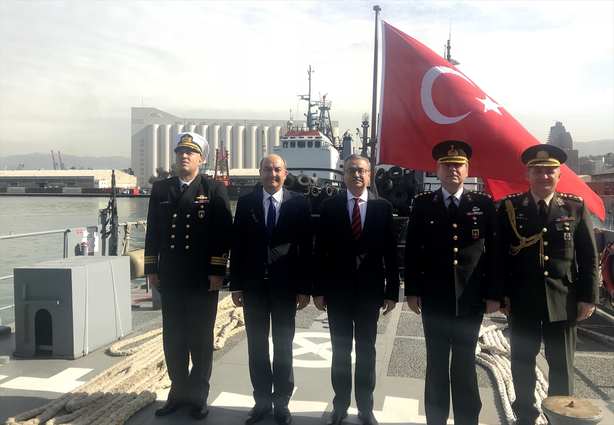 Türkiye'nin Beyrut Büyükelçisi Hakan Çakıl ve Mersin Valisi İhsan Su, Beyrut Limanı'na uğrayan "TCG Bandırma" isimli askeri gemiyi ziyaret etti.