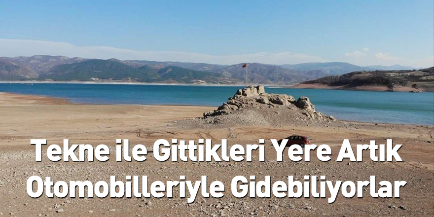 Tokat’ta baraj gölünde su seviyesinin düşmesi sonucu vatandaşlar, tekneyle gidilebilen kayalıklara artık otomobilleri ile gidebiliyor.