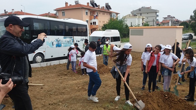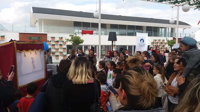 Kortej yürüyüşü ile renkli bir açılış yapılan Teos Çocuk Şenliği’nde, Seferihisarlı yönetmen Çağan Irmak’ın öncülük ettiği TEMA Vakfı’nın “Evladın için bir ağaç dik” kampanyası kapsamında boş bir araziye 51 fıstık çamı fidanı dikildi. Ardından Makedonya, Ukrayna, KKTC ve Gaziantep’in Oğuzeli ilçesinden gelen konuk çocuklar Teos Marina’yı ziyaret ettiler.