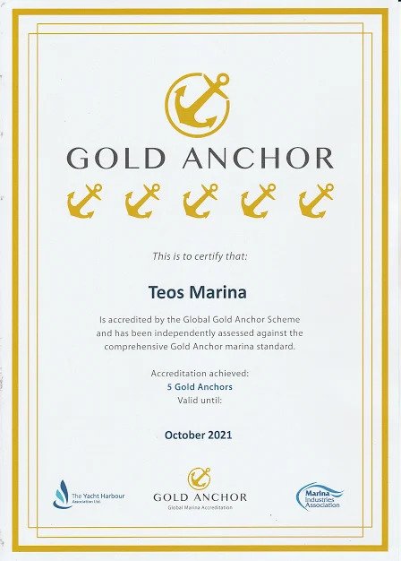 Geçtiğimiz günlerde The Yacht Harbour Association ekibi tarafından denetlenen Teos Marina, yeniden 5 altın çıpa sertifikası almaya hak kazandı.