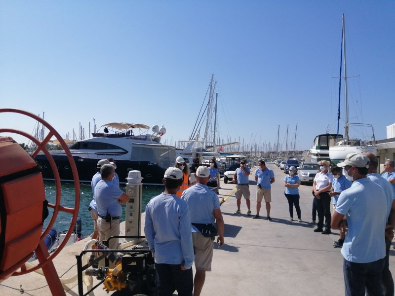 Teos Marina güvenlik, yangın ve çevre konularında peş peşe yapılan eğitim ve tatbikatlarla her türlü tehlikeli duruma karşı acil müdahaleye hazır olduğunu bir kez daha gösterdi.