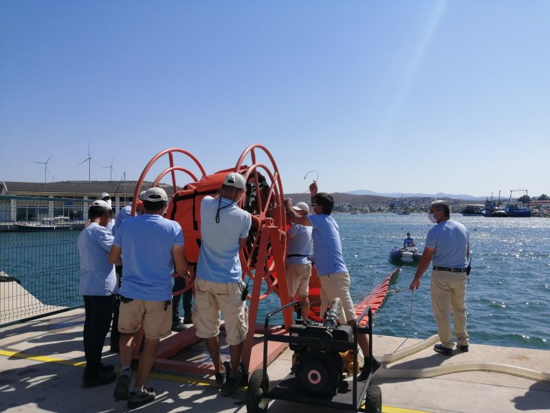 Tatbikatta senaryo gereği, bir tekneden denize fuel oil döküldü. Olayı öğrenen Acil Müdahale ekibi olay yerine gerekli malzemeler ile geldi. Tambura sarılı bariyer denize serilerek petrol sızıntısının yayılmasının önüne geçildi. Bariyer çevrilmesinin ardından, denize sızan petrolü temizleme çalışmasında kullanılacak malzeme kısa sürede kuruldu.
