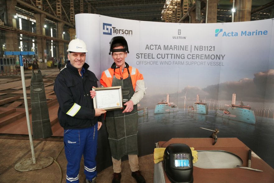 Tersan Tersanesi, Hollanda merkezli Acta Marine için inşa ettiği Metanol ve MDO/HVO yakıtları ile çalışan DP2 açık deniz Servis ve Destek Gemilerinin ikincisi NB1121 için çelik kesim töreni düzenledi.