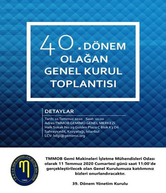 TMMOB 40. Dönem Olağan Genel Kurulu Toplantısı, 11 Temmuz’da İstanbul Kozyatağı’ndaki TMMOB GEMİMO Genel Merkezi’nde gerçekleşecek.