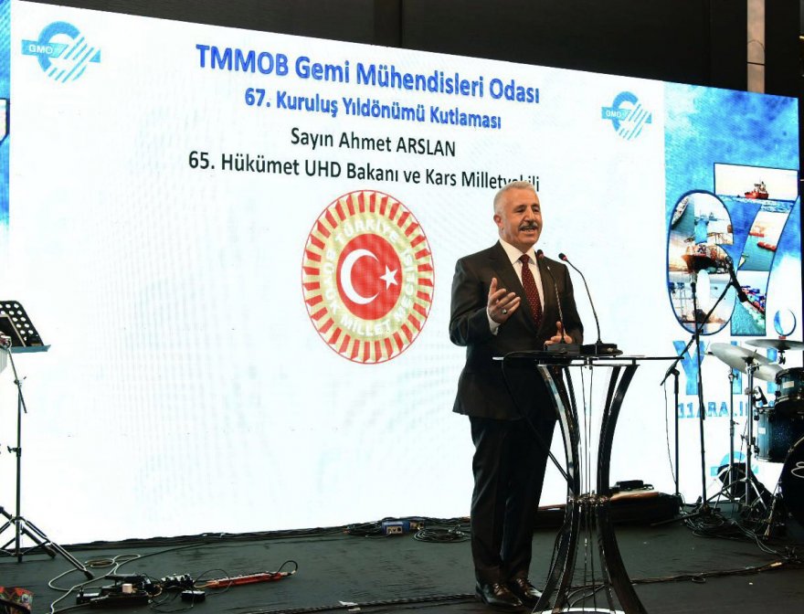 Ahmet Arslan, gemi mühendisliği mesleğinin gelişmesi ve denizcilik sektörünün büyümesi adına önemli çalışmalar yapıldığını belirterek Türk bayraklı gemilerin kara listeden beyaz listeye geçmesinde meslektaşı olan gemi mühendislerinin pay sahibi olduğunu ifade etti.