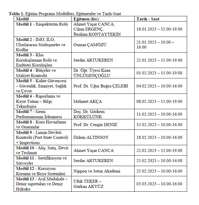 Bu misyon ve teknik vizyon gereği ve görülen ihtiyaç üzerine, ülkemizin denizcilik işletmelerinin ihtiyaçlarına cevap vermek ve niteliği artırmak için, enspektör kavramının, enspektörün görev ve sorumluluklarının ve tüm güncel teknik detaylarının anlatılıp tartışılacağı ülkemizde daha önce gerçekleştirilmemiş ve ilk kez TMMOB Gemi Makineleri İşletme Mühendisleri Odası ve Türk Armatörler Birliği tarafından gerçekleştirilecek Enspektör Eğitim Programı düzenlenecektir.
