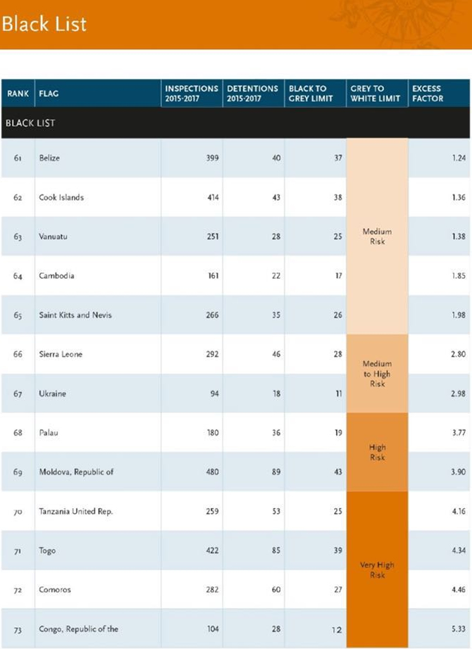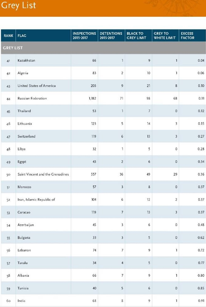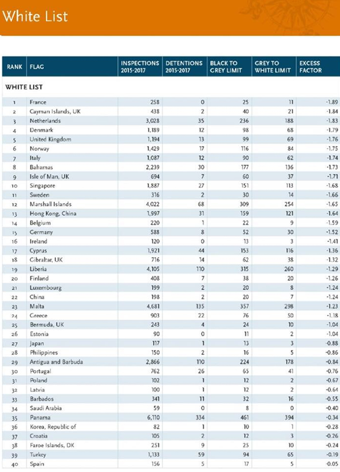 2015-2017 Yılı Paris MoU Denetim Rakamlarına göre, dönem içerisinde Paris MoU bölgesinde Türk Bayraklı gemilere toplam 1133 denetim gerçekleştirildi ve bu denetimler neticesinde 59 adet gemi tutuldu. Bu veriler doğrultusunda 2017 yılı sonunda Türk Bayrağı Beyaz Liste'de yer almaya devam etti.