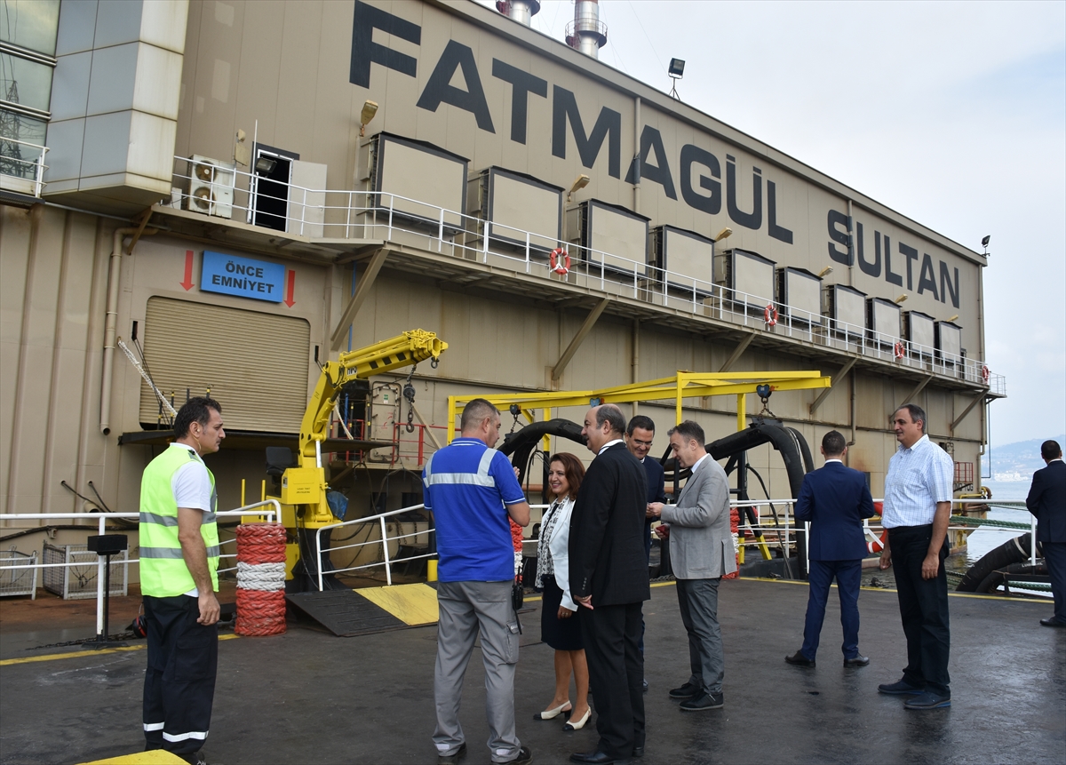 Çakıl, Lübnan'da halihazırda elektrik üreten 3 Türk enerji gemisinden biri olan Karadeniz Powership Fatmagül Sultan'da incelemelerde bulunarak yetkililerden bilgi aldı.