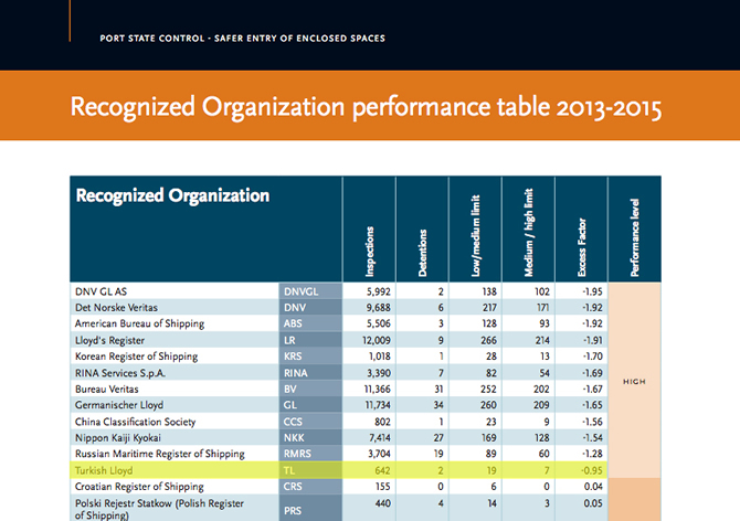 Türk Loydu’nun liman devleti kontrolleri konusunda sahip olduğu tecrübe ve uzmanlık sonucunda Türk Loydu tarafından sertifikalandırılmış gemiler, Paris MoU üyeleri tarafından daha az denetlenmektedir. Her sene olduğu gibi bu sene de söz konusu performans listesinde IACS (Uluslararası Klas Kuruluşları Birliği) üyesi bazı kuruluşları geride bırakan Türk Loydu, bu başarı ile Paris MoU’da Yüksek Performans konumunu koruma hedefini de gerçekleştirmiş oldu.