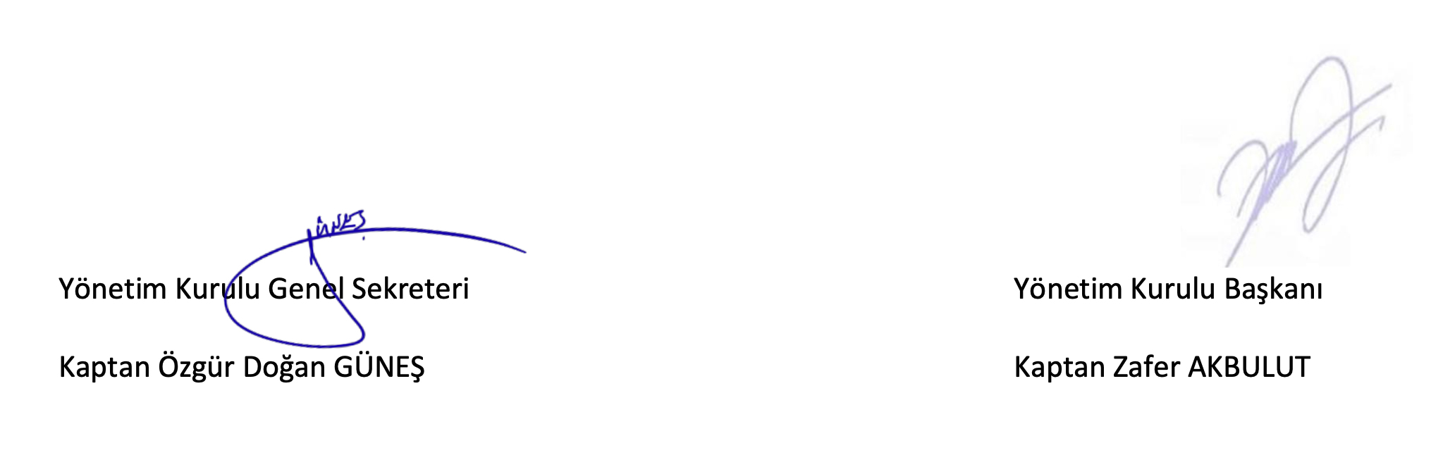 Türk Uzakyol Gemi Kaptanları Derneği Yönetim Kurulu adına;