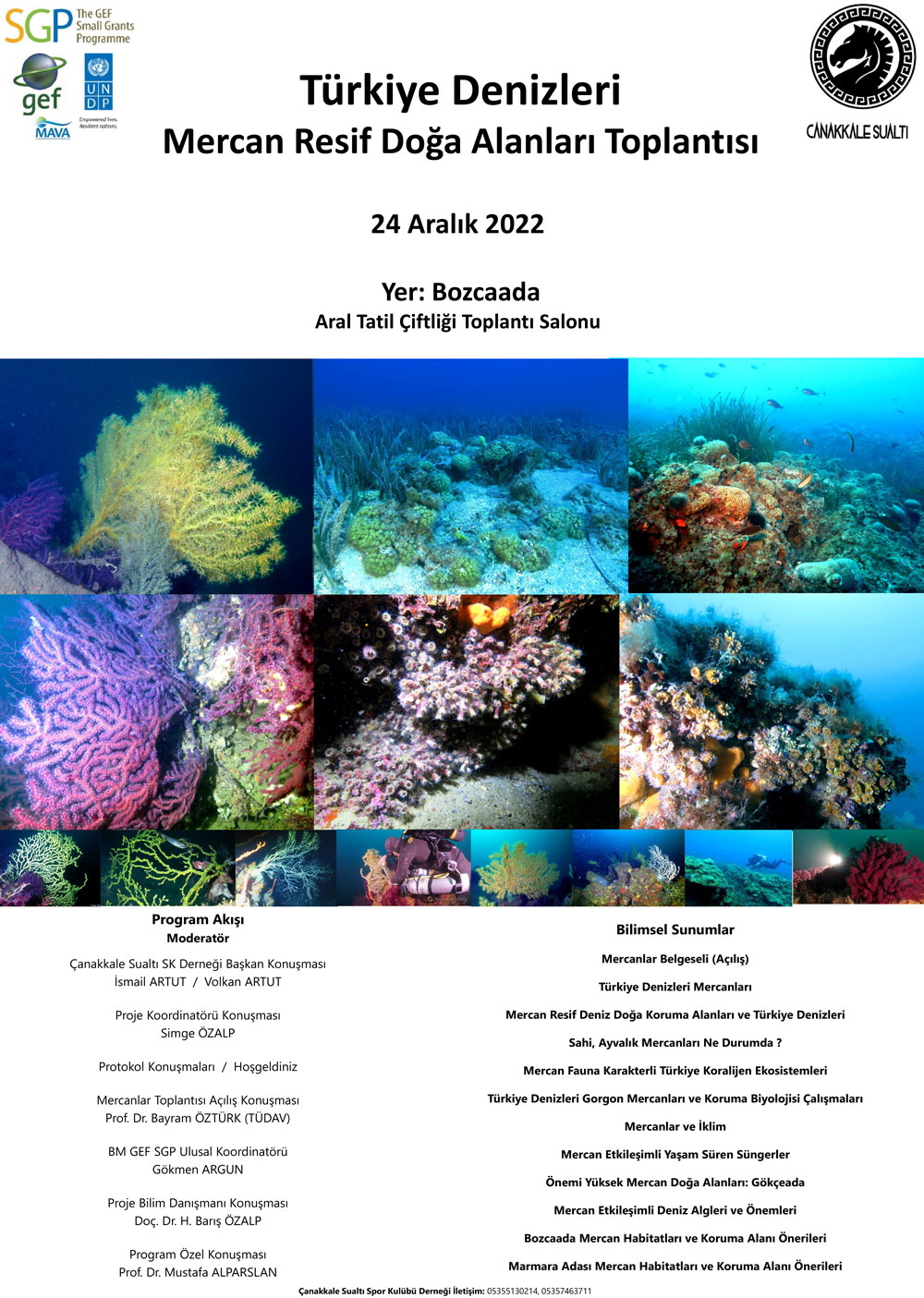 UNDP Türkiye'nin desteğiyle yürütülen, Çanakkale Sualtı Spor Kulübü Derneği tarafından gerçekleştirilen 2022 yılı “Türkiye Kıyıları Mercan Resif Deniz Doğa Alanlarını Geliştirme, Koruma, İzleme ve Yönetimi“ mercan projesi kapsamında 24 Aralık 2022 tarihinde Bozcaada'da Türkiye Mercan Habitatları toplantısını gerçekleştirilecek.