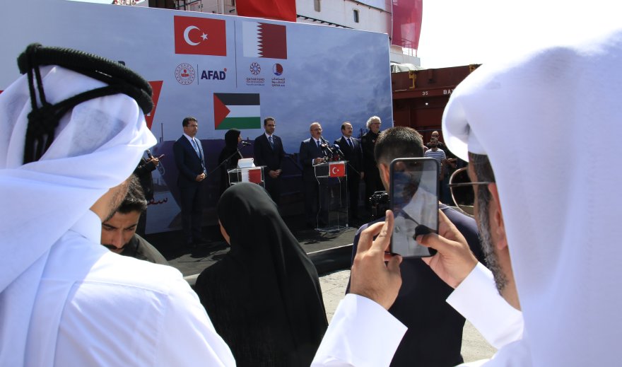 Uğurlama töreninde konuşan İçişleri Bakan Yardımcısı Münir Karaloğlu, "Bugün güzel bir niyetle buradayız. Gazze'ye uğurlayacağımız 11'inci gemimiz daha özel bir gemi. Katar Kalkınma Fonu'yla Türkiye Cumhuriyeti adına, AFAD başkanlığımızın organize etmiş olduğu iyilik gemisini biraz sonra Mısır'ın El Ariş Limanı'na Gazze'deki kardeşlerimiz için uğurlamış olacağız. Filistin meselesinde göstermiş olduğu dik duruş, Filistin ve Gazze halkına gösterdiği yardım ve dayanışmadan dolayı hem Katar devletine hem Katar halkına sayın bakanın şahsında şükranlarımı arz ediyorum. 7 Ekim'de İsrail'in Gazze'ye başlatmış olduğu insanlık dışı saldırılarla bugün bir insanlık suçu bir soykırım uygulanmakta. Bu saldırıları oluşturan ne İsrail ne de ona destek olanlar tarihin vicdanında yargılanmaktan kesinlikle kurtulamayacaklardır. Halbuki biz sussak tarih susmayacak. Tarih sussa hakikat susmayacak. Türkiye Cumhuriyeti dün olduğu gibi bugün de yarın da Filistin'in haklı davasında uluslararası platformda Filistin'in yanında tam olarak durmaya devam edecek yine Filistin halkıyla, mazlum Filistin halkıyla ve Gazze halkıyla yardımlaşmaya ve dayanışmaya da devam edecektir" dedi.