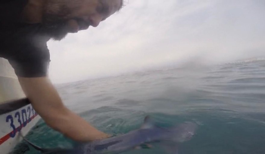 Mersin'de hobi olarak balık avlayan Çınar Küçük, geçen ay oltasına takılan yaklaşık 120 santimetre boyundaki Mako cinsi köpek balığını, yüzgecine takılan olta iğnesini çıkarıp bir süre eliyle tutarak yüzdürdükten sonra denize geri bırakmıştı.