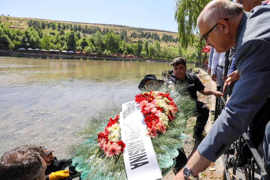 Diyarbakır İl Afet ve Acil Durum (AFAD) Müdürlüğü ile Büyükşehir Belediyesine bağlı dalgıç adamlar Dicle Nehri'nde temizlik çalışması yürüttü. Organik malzemelerden yapılan çelenk, 6 Şubat'taki Kahramanmaraş merkezli depremlerde hayatını kaybedenler anısına nehre bırakıldı.
