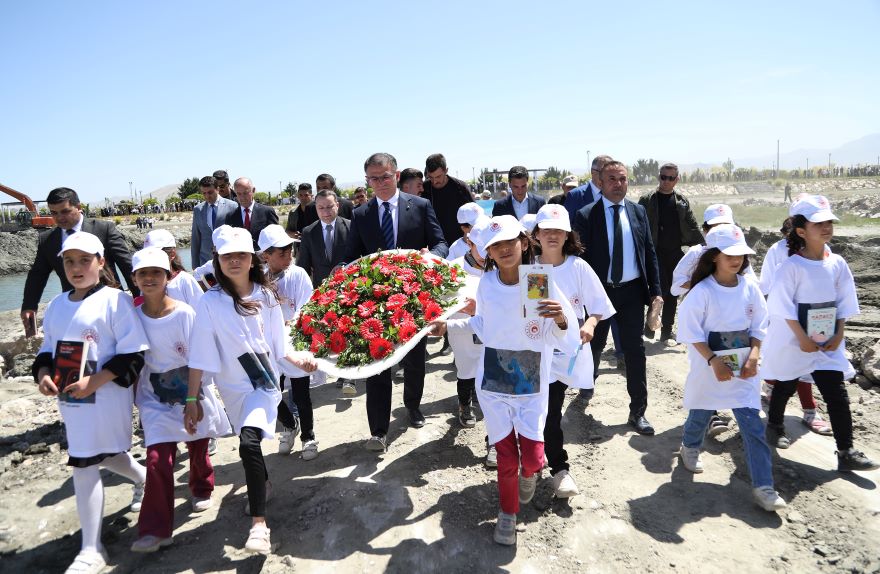 Van'da düzenlenen Dünya Çevre Günü etkinlikleri kapsamında, depremlerde hayatını kaybedenler anısına Van Gölü'ne çelenk bırakıldı.