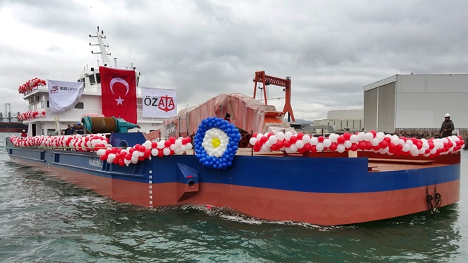Türkiye’nin en büyük tarama gemisi Kanuni, Çayırova Belediye Başkanı Şevki Demirci, Özata Tersanesi yönetimi ve tersane çalışanları, Es Group yöneticilerinin katılımıyla denize indirildi.