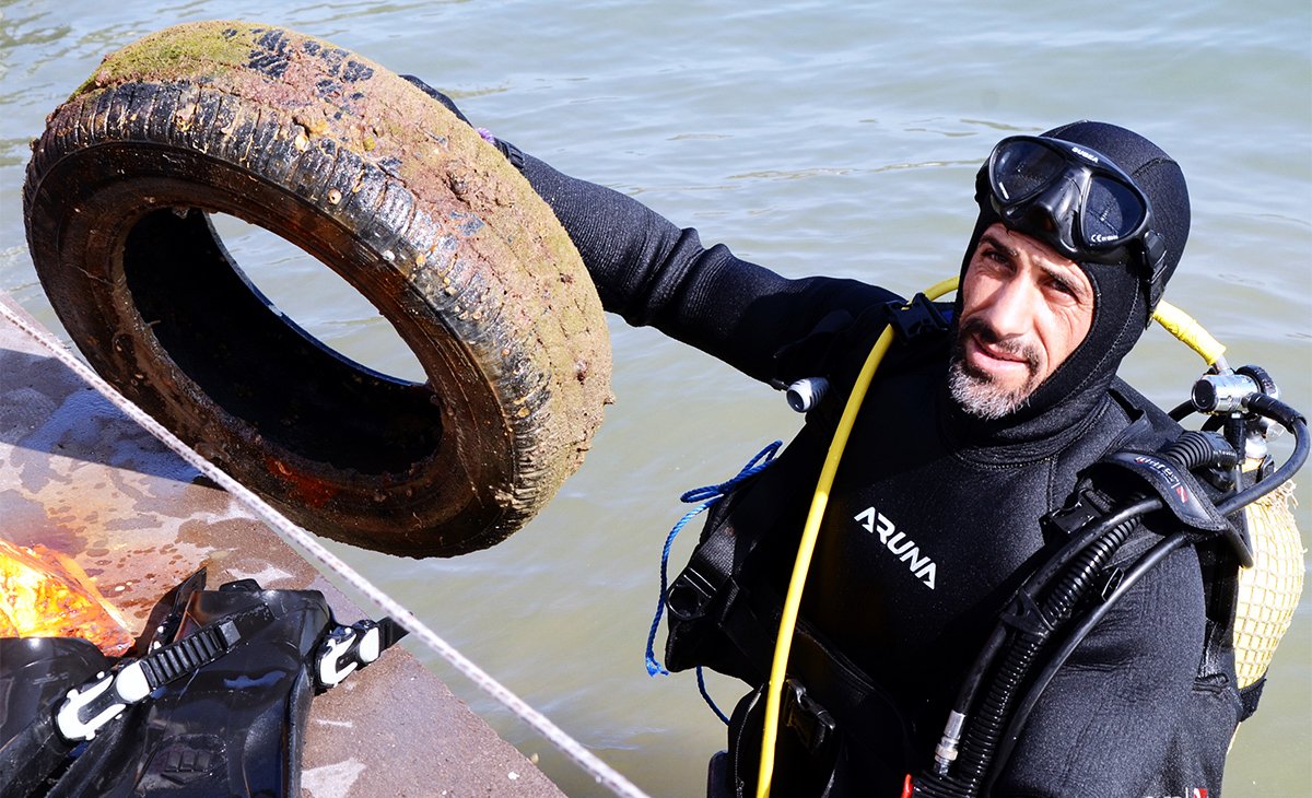 Sabah saatlerinde başlayan ve yaklaşık iki saat süren deniz dibi etkinliğinde dalgıçlar 300 metre uzunluğundaki sahilde kıyıdan 30 metre uzaklıkta ve 12 metre derinliğe kadar dalarak dipteki atıkları topladı. Küçük atıkları çuvallara koyarak büyük atıkları ise yüzerek karaya çıkaran dalgıçlar gördükleri karşısında şok olurken, kıyıya çıkarılan atıkları izleyen vatandaşlar ise büyük şaşkınlık ile atıkları izledi.