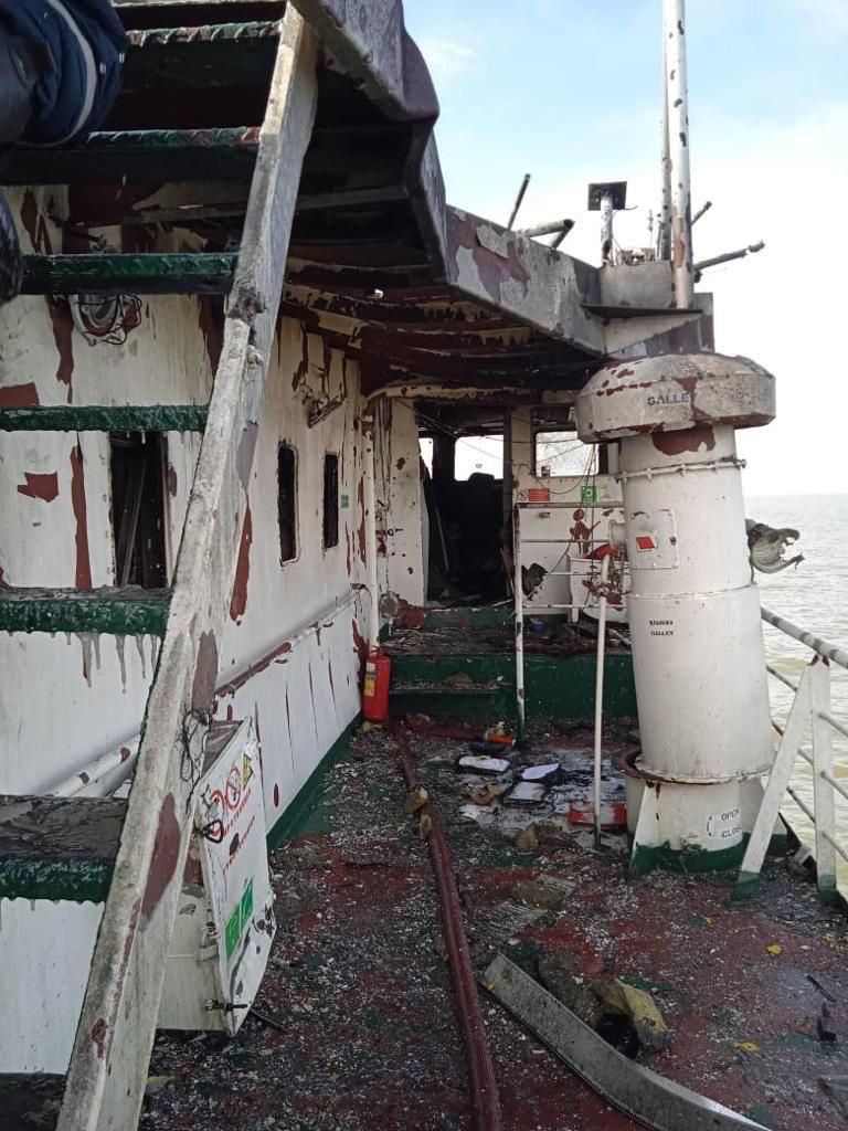 Rusya Federasyonu Soruşturma Komitesi tarafından yapılan açıklamada, vurulan geminin kaptan kamarasına bir atışın isabet etmesi sonucu gemide yangın çıktığı bildirildi.